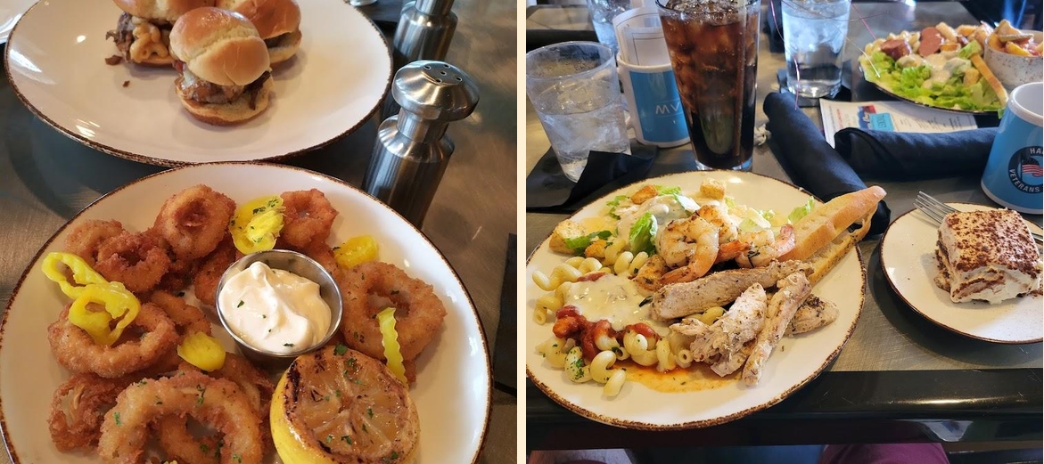 Must-try dishes include the Eggs Benedict, Smoked Grill Burger, and Bananas Foster Pancakes. Desserts and cocktails also stand out on the menu.